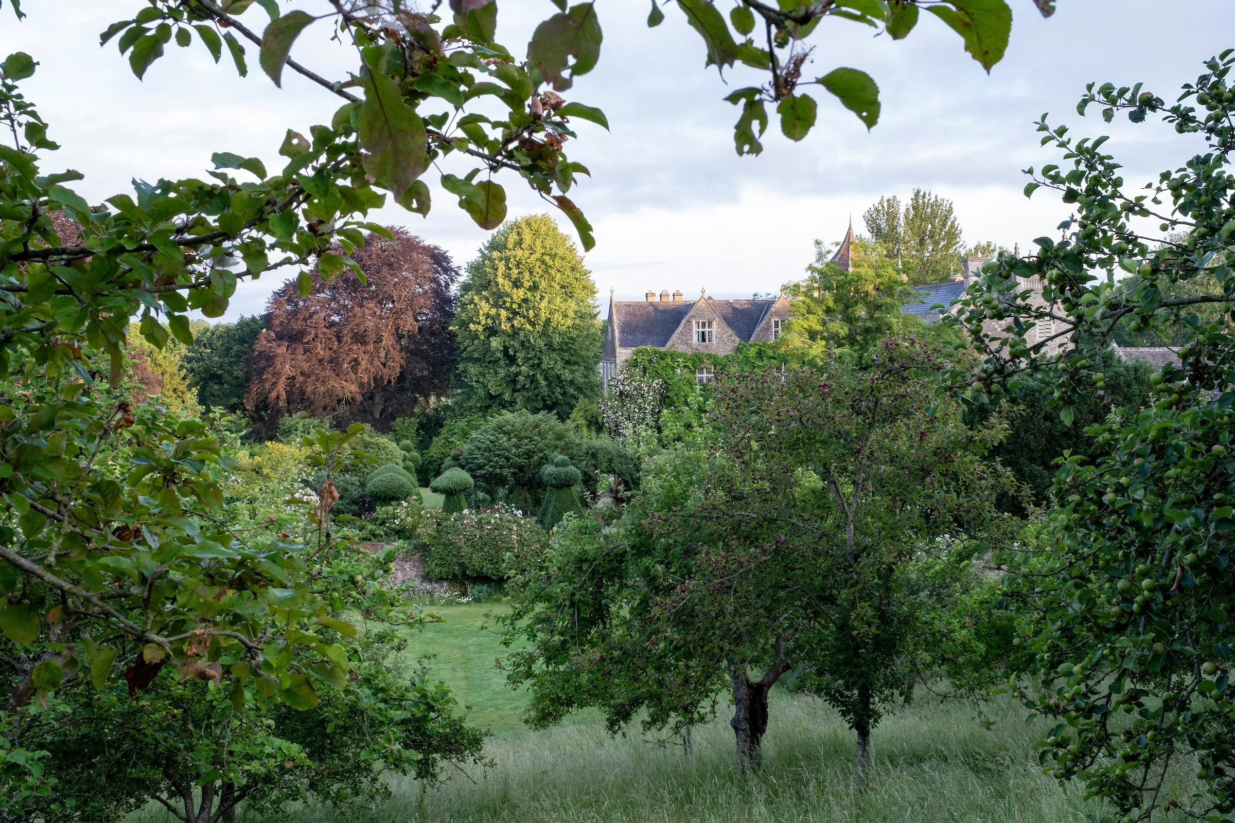 Built on the elevated land to the west of the Court. The Vegetable garden consists of twelve long beds, twelve raised beds, two fruit cages, a chicken coop, a greenhouse with a herb border, all enclosed within a wild flower perimeter. Gardener, Elsie Boissevain, here has successfully grown an abundance of 100% organic produce and continues to experiment with different vegetables as well as growing methods. She has established a five year crop rotation to ensure the soil does not become depleted of its nutrients.